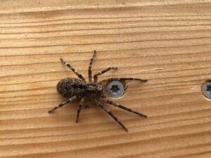 Diese Spinne haben wir in unserem Gartenhaus entdeckt. Auf einem Tablar sind zudem leere Lehmklümpchen aufgetaucht. Um welche Spinne handelt es sich – und wie gehen wir dem Tier um?