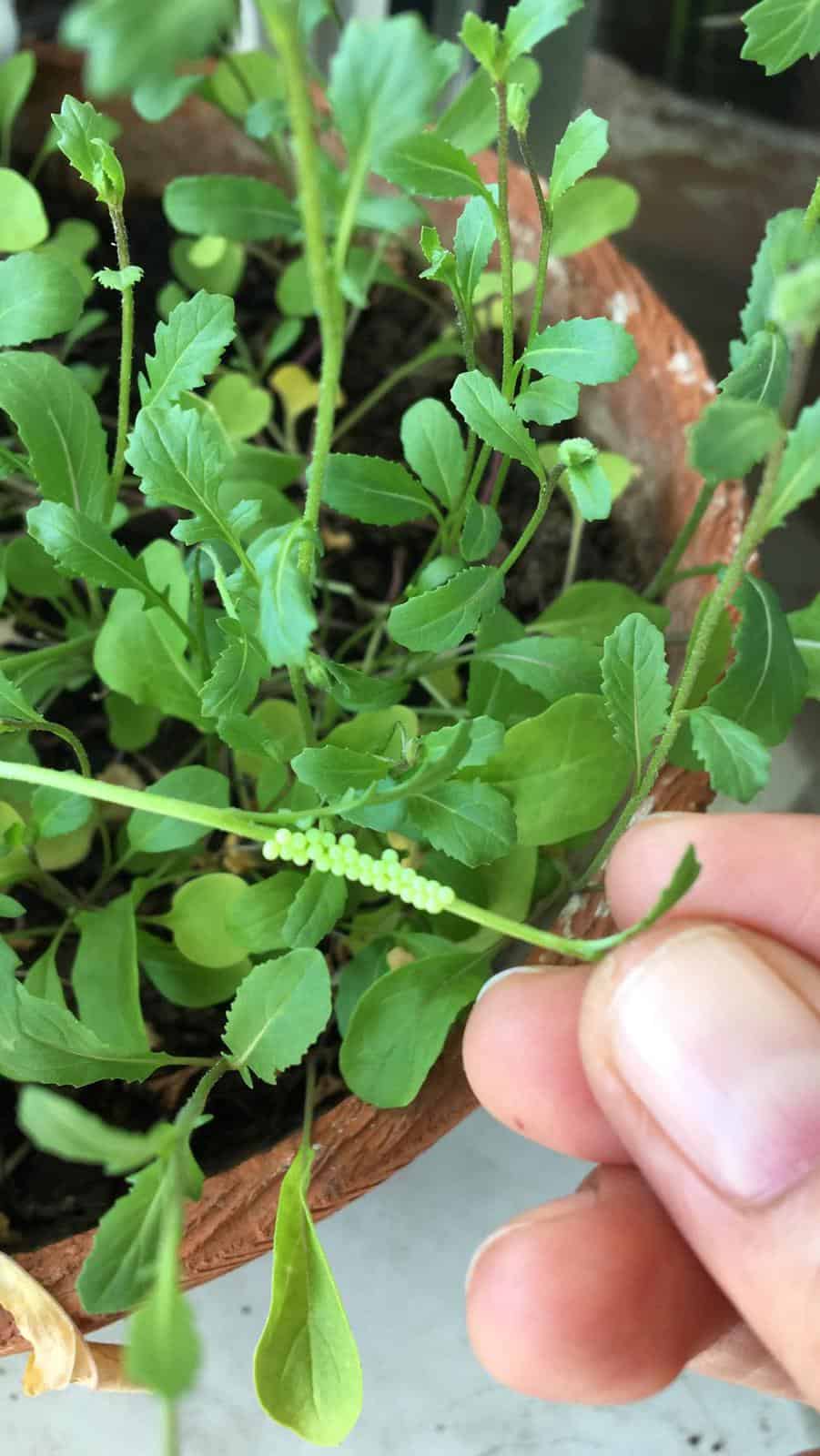 Seit ein paar Tagen befinden sich diese neongrüne Eier an unserer Rauke (Rucola). Von welchem Tier stammen sie?