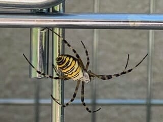 habe Heute zwei ähnliche Spinnen bei mir entdeckt, der Körper ist aber rundlicher. Gemäss Internet ist das eine Spinnenwespe oder Argiope Brunnicha – gelb-schwarze gestreifte Spinne. Habe ich auch noch nicht gesehen!