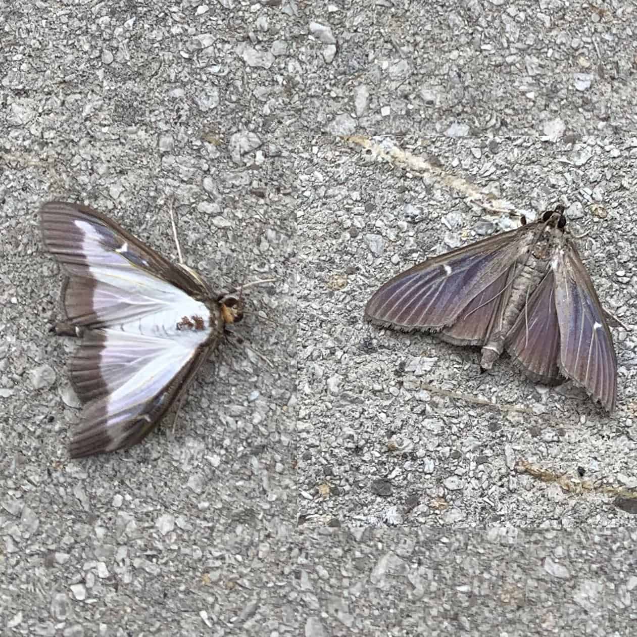 Beim öffnen eines Fensters sind mir einige Falter entgegen gekommen die sich anscheinend im Fensterrahmen verpuppt haben. Die zwei Falter im Bild sind davon geflogen, ein weiterer (wie die dunkelfarbige im Bild) war leider tot. Insgesamt hat es etwa 6 ähnliche Puppen gegeben, die alle Leer gewesen sind. Mich würde es interessieren, zu welchen Arten die Falter gehören und warum es einen Farbunterschied gibt.