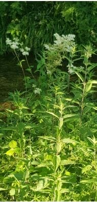 Im Vordergrund sehe ich Brennnessel, auf die reagieren alle Menschen bei Berührung.