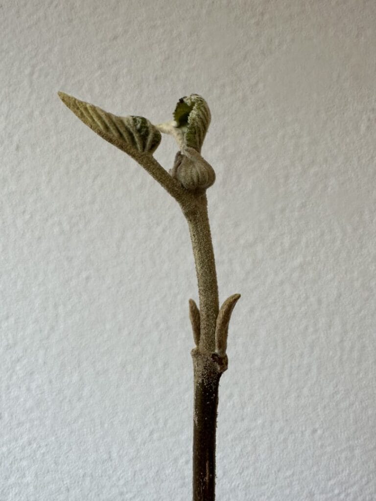 Die Stellung der Knospen am Trieb kann ein weiteres hilfreiches Erkennungsmerkmal sein. Diese entspricht der Blattstellung im Sommer, da die Knospen während der Vegetationsperiode in den Achseln der Blätter gebildet werden. Grundsätzlich kann man zwischen gegenständig und wechselständig unterschieden. Da die Natur sehr vielfältig ist, gibt es zwischen dieser Unterteilungen noch weitere Stellungen wie wechselständig-spiralig oder wechselständig-zweizeilig. Die Stellung der einzelnen Knospen zum Trieb eignet sich ebenfalls gut als Erkennungsmerkmal. Knospen können dem Trieb anliegen oder ihm abstehen – ein Beispiel mit abstehenden Knospen ist die Heckenkirsche.