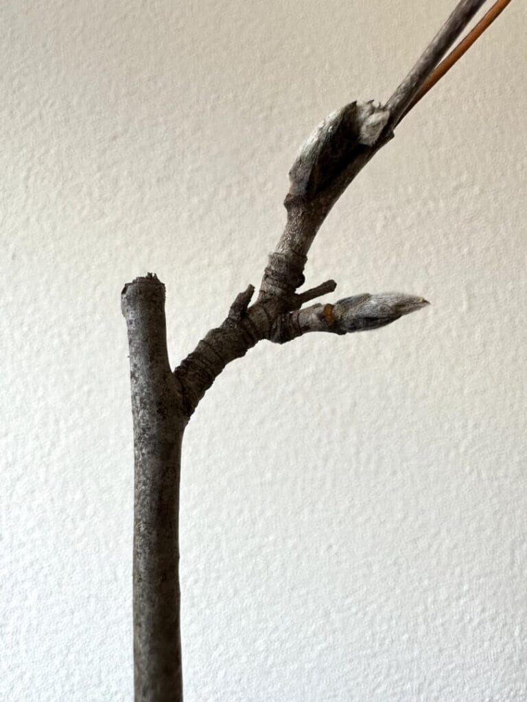 Die Knospen vom Schwarzdorn (Prunus spinosa) sind sehr klein (1-2mm) und die Blütenknospen treten als Bouquetknospen auf.