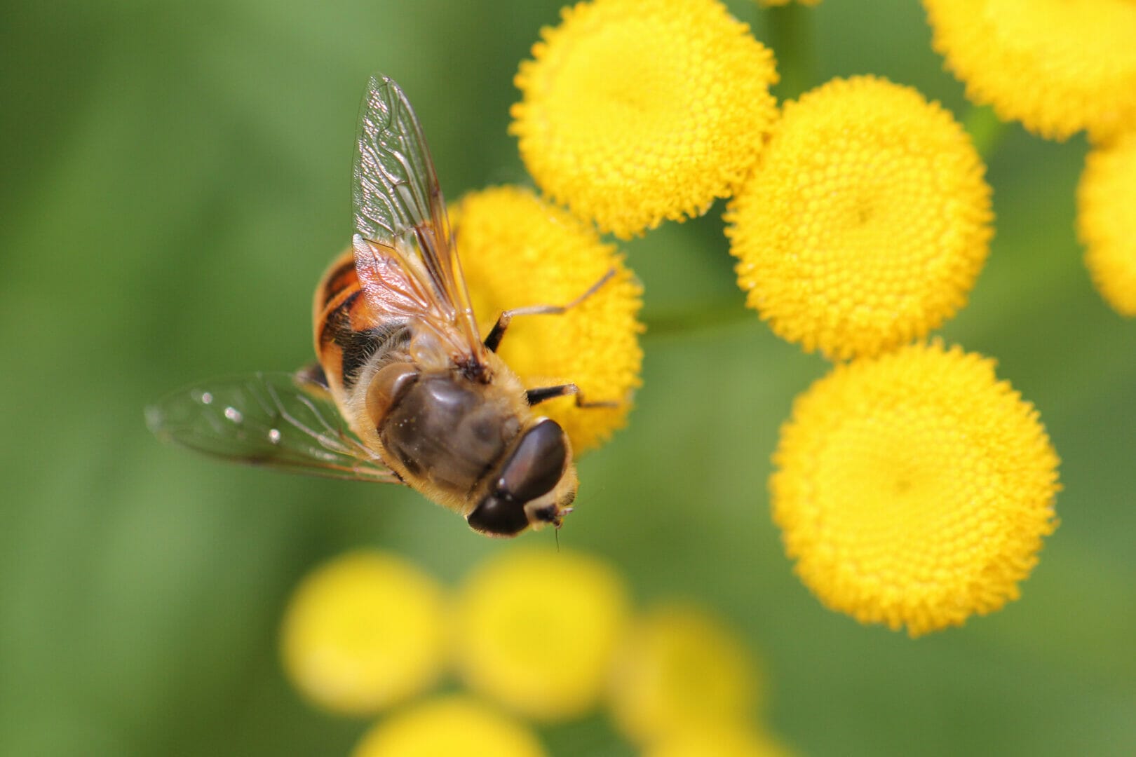 Rainfarn sollte in keinem Garten fehlen. Sein starker und eigenwilliger Geruch mag Menschen irritieren. Aber für Insekten scheint sein Duft unwiderstehlich. Schwebfliegen, Bienen, Wespen und allerlei weitere geflügelte Tiere fliegen auf ihn.